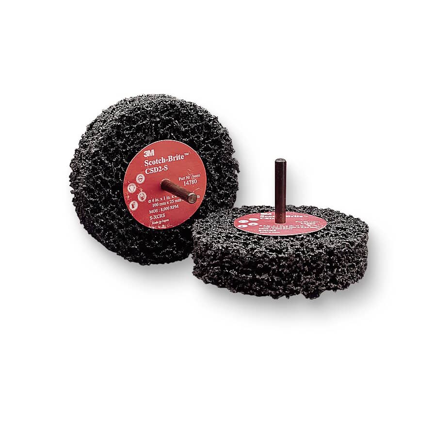 The Scotch-Brite™ Roloc™ Clean and Strip Disc uses silicon carbide, because it’s a very sharp synthetic mineral that is commonly used for low-pressure applications such as paint prep. While it breaks down faster than aluminum oxide, it produces a superior finish. The extra coarse (XCS) mineral works hard to remove unwanted corrosion and blemishes from a variety of substrates. It aggressively removes paint and rust from seams, door jambs, drip moldings, pinchwelds and other difficult-to-reach areas.