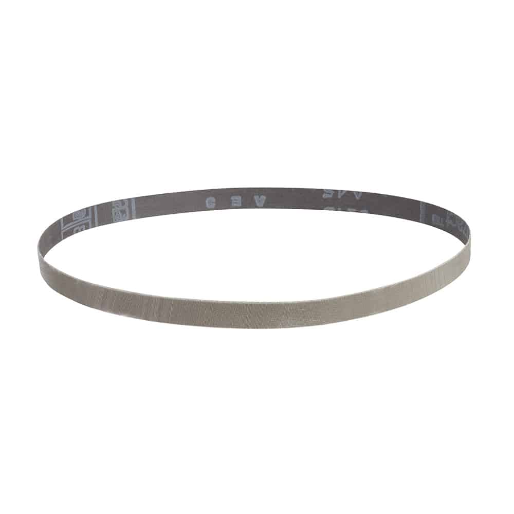 The belt uses a Film Media Splice, a strong secure bond joining the belt ends, consisting of a thin film-joining media that minimizes “chatter marks,” ensures a smooth running belt, and consistent finishing results. When compared to conventional abrasive products, proprietary Trizact abrasives produce a finer finish, achieve results faster, and last longer.
