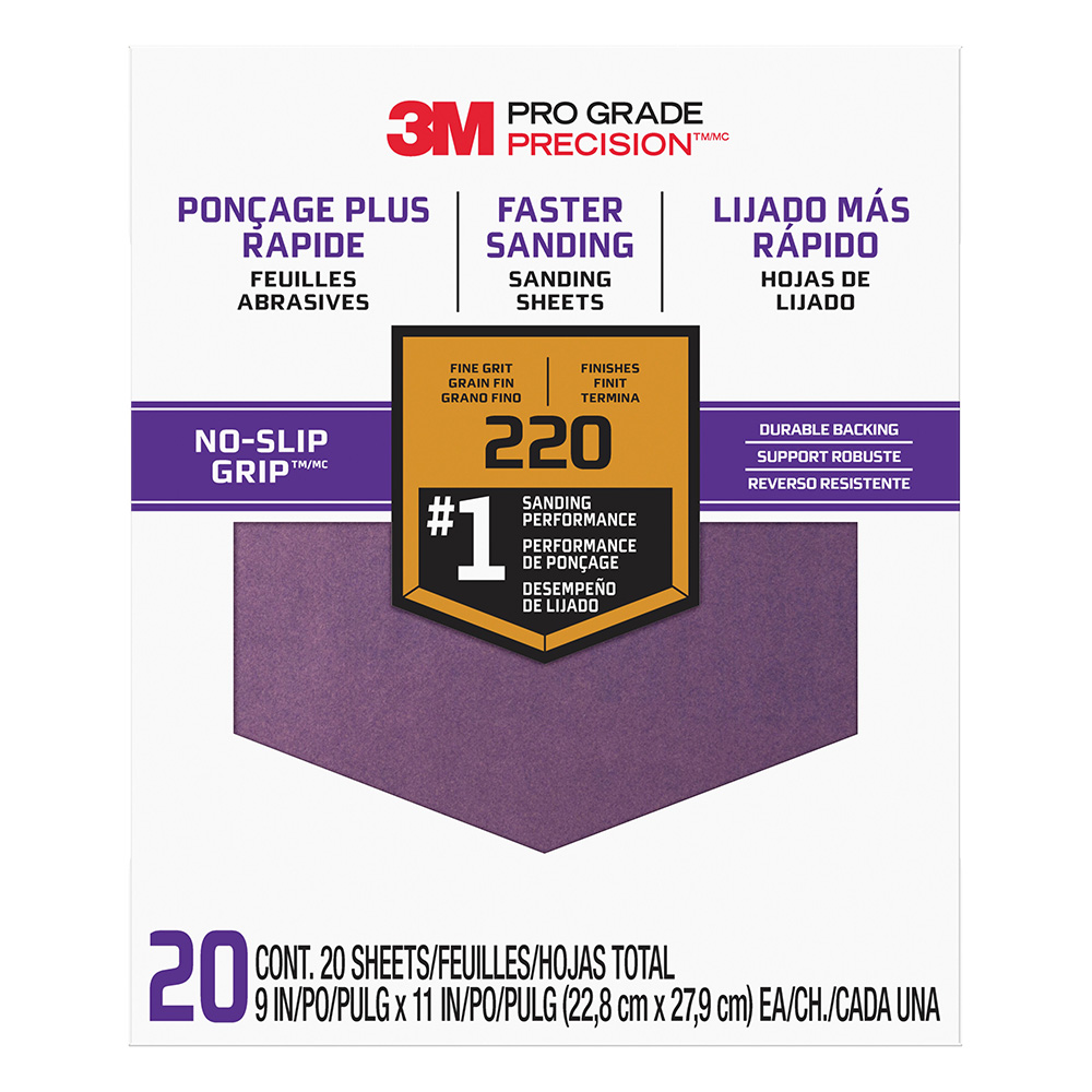 Get the job done in a flash with the help of 3M Pro Grade Precision Faster Sanding Sheets. This premium sandpaper makes sanding your surface a breeze with its NO SLIP GRIP backing and high quality materials. Each large sheet is perfect for customizing to your needs, and its unique coating resists clogging. Whether you’re sanding wood, drywall, or metal, each sheet can be used on wet or dry surfaces, and the durable backing stands up to the job. Whether you’re working construction or refinishing a piece of furniture, rely on 3M Pro Grade Precision Faster Sanding Sheets to get the job done right.