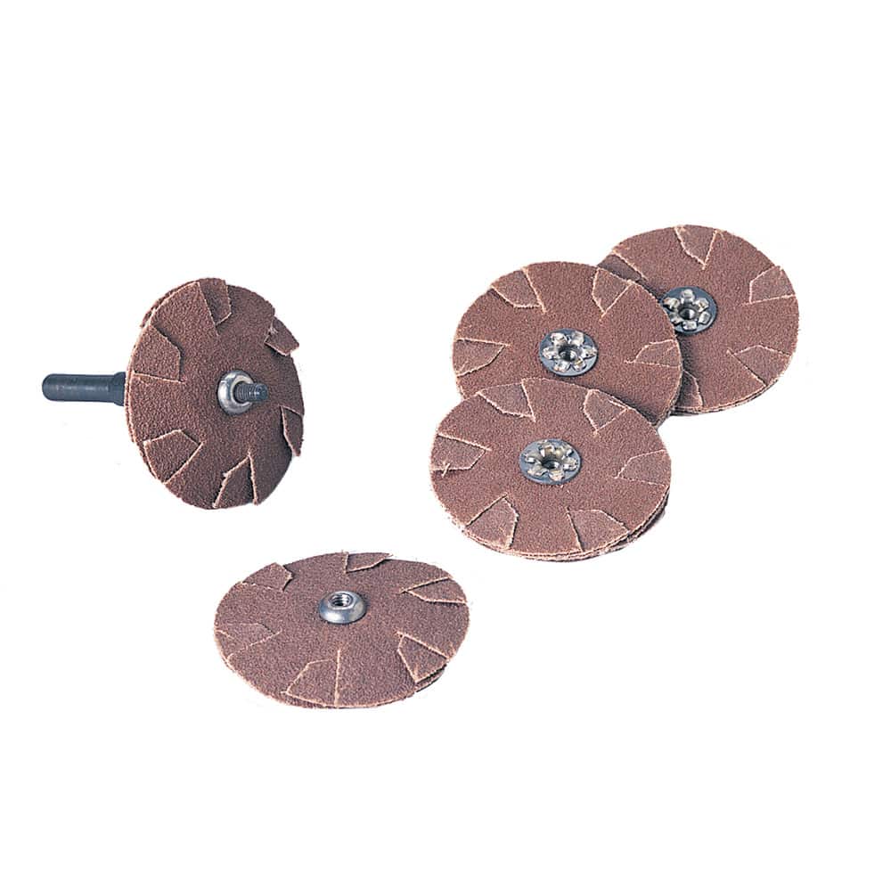 For the convenience of tool-free disc changes, our overlap discs have a threaded eyelet arbor hole that screws onto a mandrel and is secured by hand with an attachment bolt (both available separately). A shorter mandrel allows for a steadier application, while a mandrel with extended reach allows access deeper into pipe interiors. Compatible threaded Standard Abrasives Mandrels are available separately with thread sizes of 8-32, 3-48, and 1/4-20. An extended version is available with 8-32 threads.