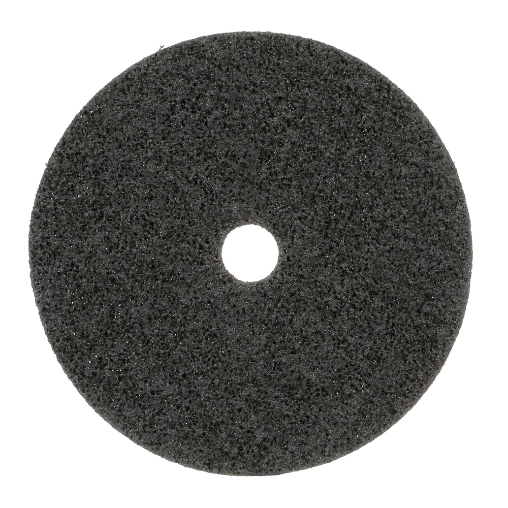 The Scotch-Briteâ„¢ SL Surface Conditioning Disc is made with a Hook and Loop backing. Small tufts of non-woven nylon fibers are pulled through the abrasive’s scrim to create loops which, subsequently, attach to the hooks on a Hook and Loop holder pad (sold separately).The hook-and-loop feature makes disc attachment, removal and re-attachment quick and easy. Hook and Loop attachment systems are great for work spaces where adhesive-backed discs may become contaminated by dust or dirt and are often used in applications where an adhesive-backed disc may be too aggressive. The hook-and-loop attachment also provides an added level of buoyancy and cushion, preventing the abrasive from gouging the workpiece. This disc may be used with a disc sander or right angle grinder.