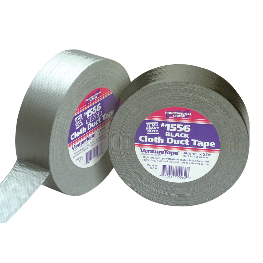 A high quality polyethylene cloth tape coated with a natural rubber pressure sensitive adhesive system, our 3M™ Venture Tape™ High Performance Cloth Duct Tape 1556 has extremely high tack, high peel and adheres to corners and irregular surfaces. The polyethylene-coated, cloth-reinforced backing conforms to curved surfaces and resists moisture and humidity while the natural rubber adhesive gives you instant stick and long-term hold. The tape tears easily, across or down, without curling. It is removable with little or no adhesive residue up to three months after application. It measures 12 mil thick and is capable of stretching up to 15 percent beyond its original length.