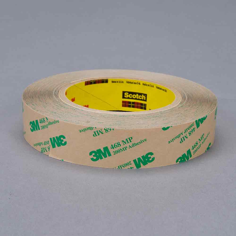 3M™ Adhesive Transfer Tape 468MP features a 5.2 mil adhesive for splicing and laminating procedures using metals and HSE plastics. The thicker caliper adds wet-out capability for surfaces where adhesion may be compromised by slight textures or irregularities. 3M™ High Performance Acrylic Adhesive 200MP is delivered on a 4.2 mil, 58 lb. polycoated kraft paper liner which is excellent for rotary processing of graphic and die cut parts. This adhesive transfer tape also resists solvents, humidity and moisture, as well as heat up to 400°F / 204°C for short periods.