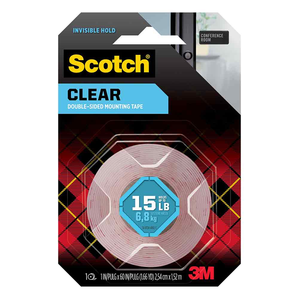For items that need an undetectable mounting means, reach for the stealth adhering power of Scotch Clear Double-Sided Mounting Tape. Virtually clear, this double-sided permanent tape is perfect for mounting glass, tiles and artwork. Its strong bond holds up to 15 pounds, without the hassle of nails or a hammer because of its 3M industrial strength adhesive. So whether you’re mounting acrylic cosmetic organizers or a translucent picture frame, affix it confidently with Scotch Clear Double-Sided Mounting Tape.