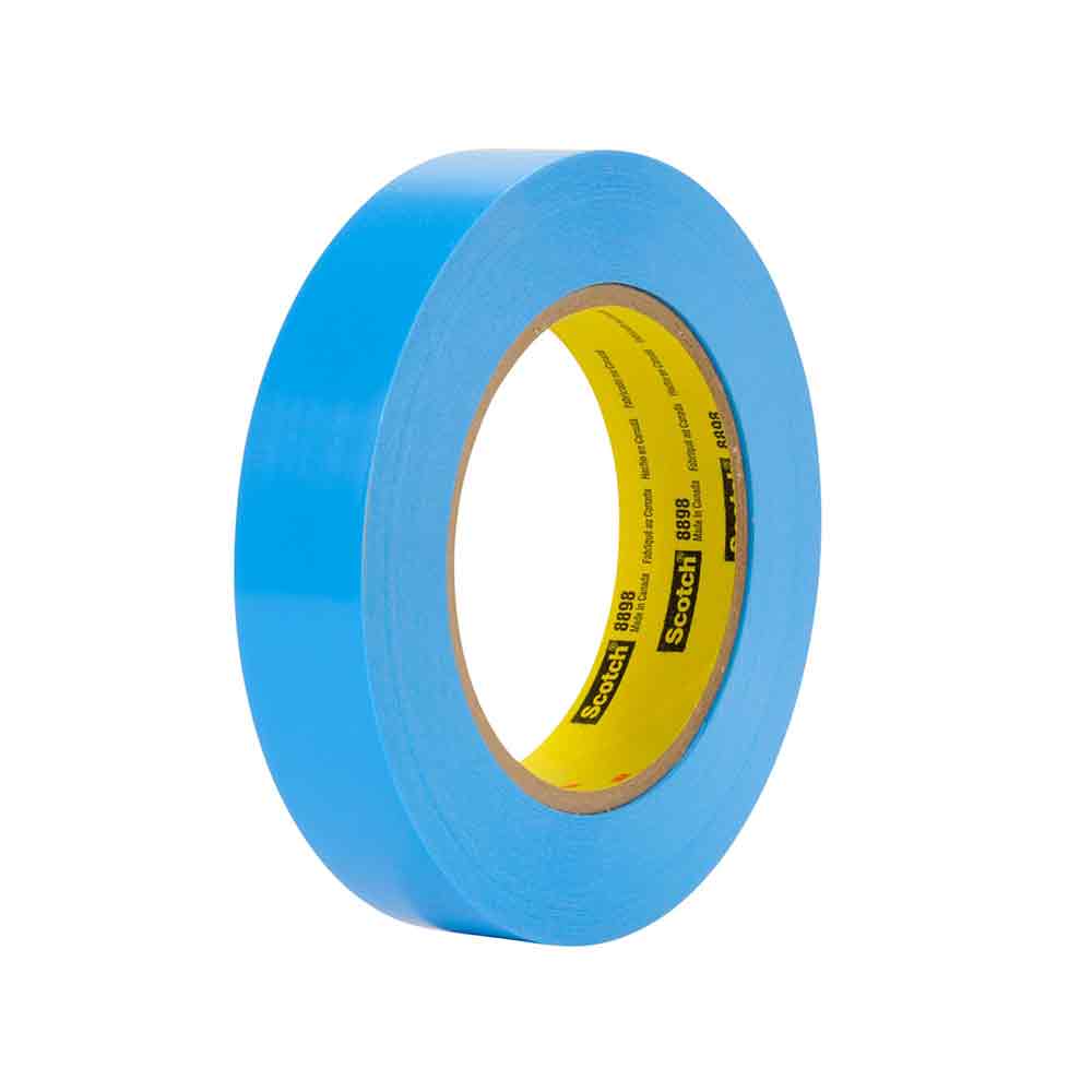 Strapping tapes are high strength, reliable and affordable solutions for product and package integrity. The tape is designed to secure shelving, racks, doors, panels, cords and parts in place, from plant to install. Available in multiple colors, Scotch Strapping Tape 8898 features high tensile strength and the polypropylene backing provides proper stiffness for manual or semi-automatic dispensing. It offers abrasion, moisture, and scuff resistance for strapping and to hold spacers, corner boards, power cords and other hard-to-manage parts firmly in place.